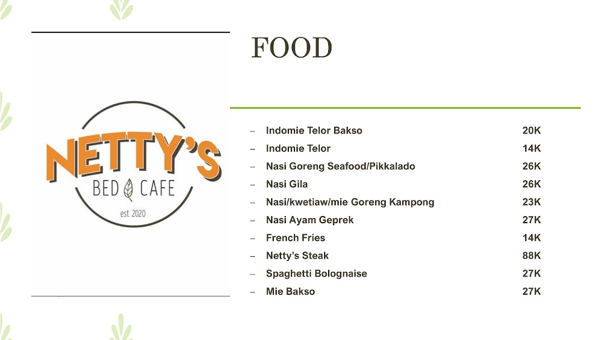 So, whether you are a local looking for your next go-to spot or a traveler seeking a taste of authentic Indonesian comfort food, Netty's Bed & Cafe is waiting to welcome you with open arms and a mouth-watering menu. Come for the food, but stay for the experience—you won't regret it!